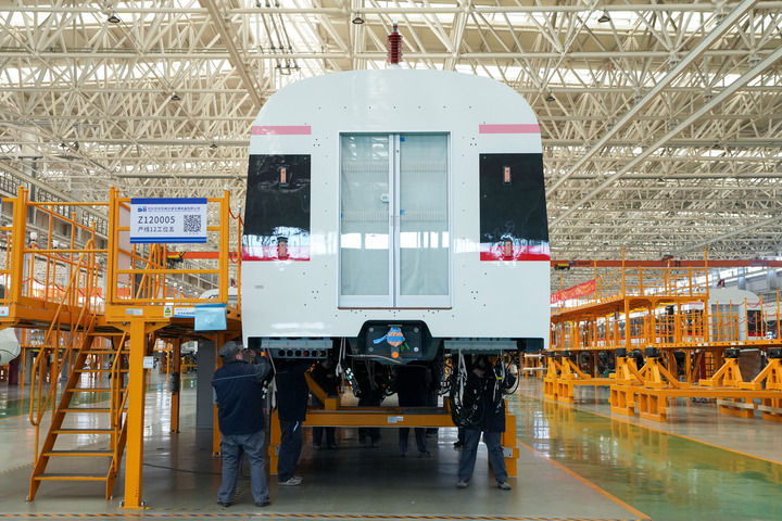 在京投装备河北京车智能制造基地,工作人员在总组装车间内工作(2025年2月14日摄)。新华社记者 鞠焕宗 摄